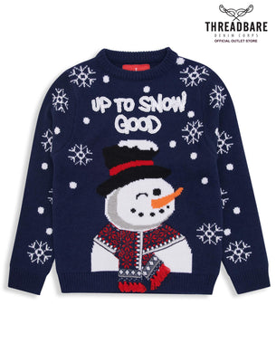 Boys Threadbare Navy "Up To Snow Good" Christmas Jumpers