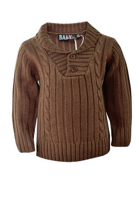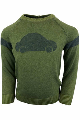 Boys Khaki Green Ribbed Cotton Knitted Car Jumper