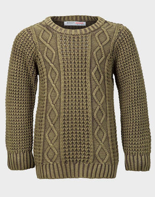 Boys Minoti Olive Wash Effect Ribbed Thick Cable Knit Cotton Long Sleeve Jumpers