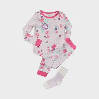 Girls Lily and Jack Lilac Floral 3Piece Top Bottom & Socks Pyjamas Set