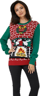 Unisex Ugly Christmas Green & Red Multi Fireplace Jumper