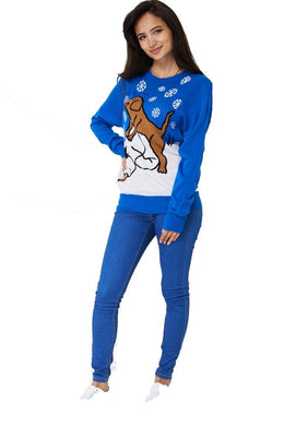 Unisex Blue Multi Ugly Knittted Dog Penguin jumper