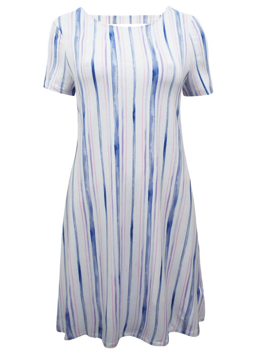 Ladies White & Blue Striped Cut-Out Back Jersey Dress