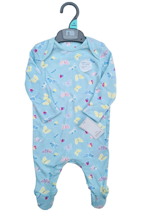 Unisex Baby Boys Girls Mothercare Sleepsuit Blue Butterfly Print Babygrow Romper