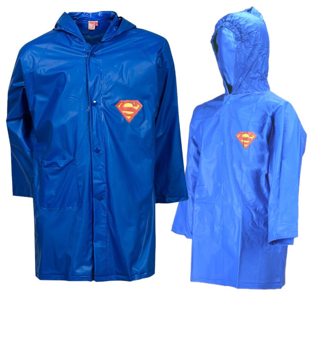 Boys Girls Superman Raincoat Hooded PVC Rain Windproof Jackets