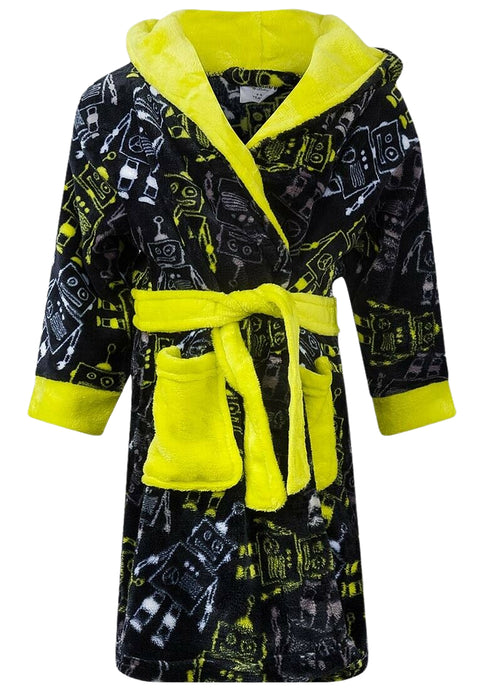 Boys MiniKidz Robot Plush Print Super Soft Fleece Bathrobe