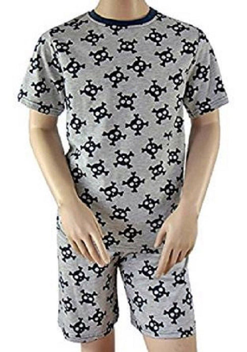 Boys Grey Skull Print Short sleeve T-Shirt & Short Pyjamas Set