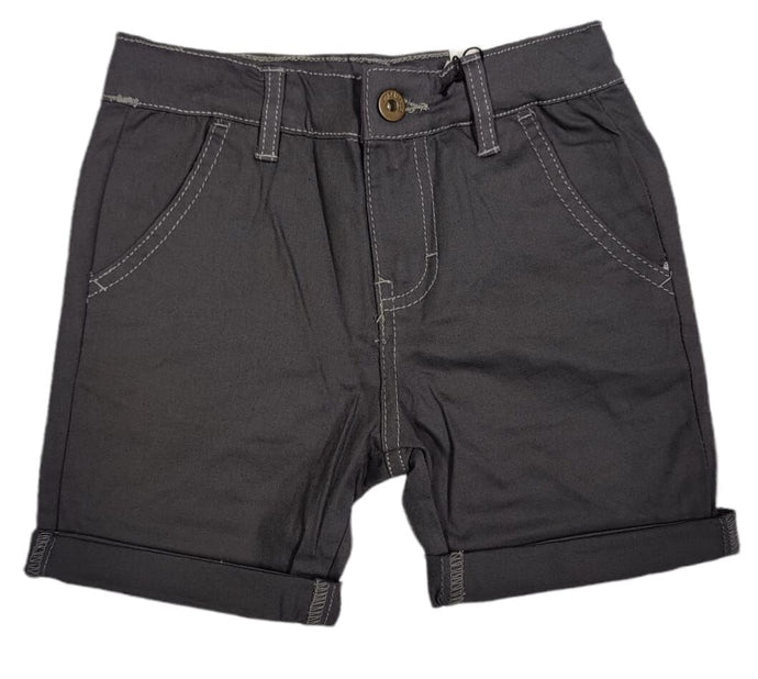 Boys Dark Grey Adjustable Waist Skinny Fit Turn Up Hem Shorts
