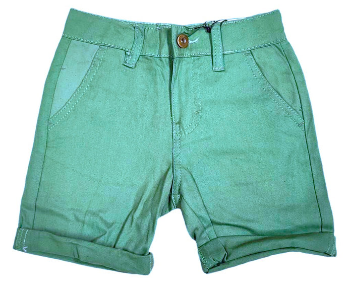 Boys Khaki Green Adjustable Waist Skinny Fit Turn Up Hem Shorts