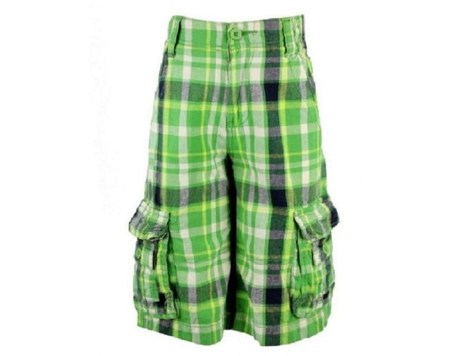 Boys Green Checked Combat Cargo Button Pocket Cotton Shorts