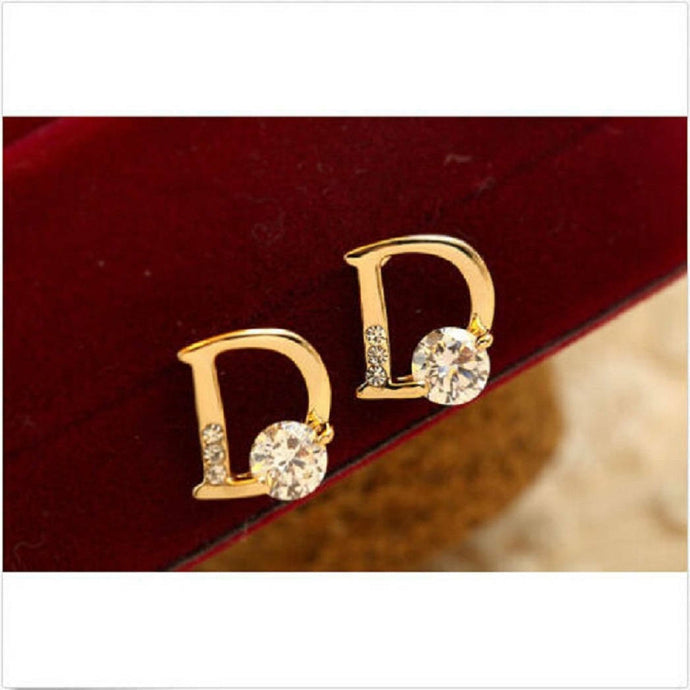 D Shape Crystal CZ Earring Gold Tone Stud Earrings