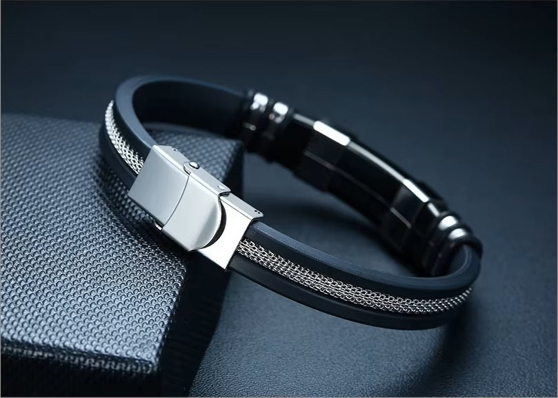 Black Stainless Steel Silicone Mid Mesh Insert Bar Bracelets