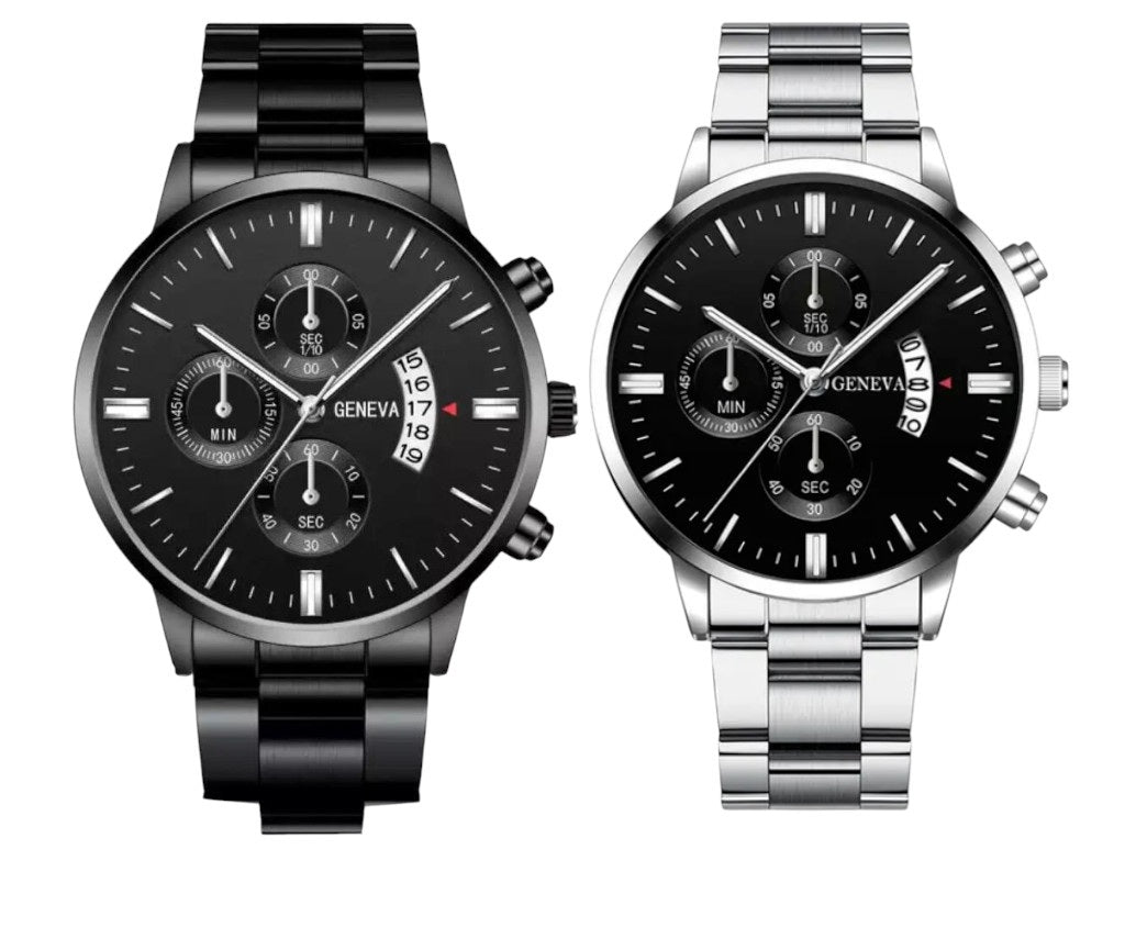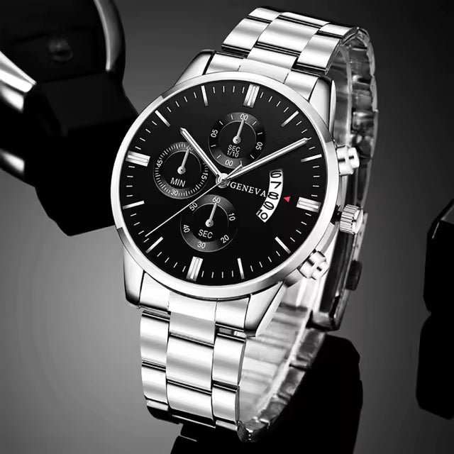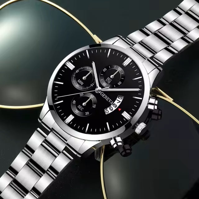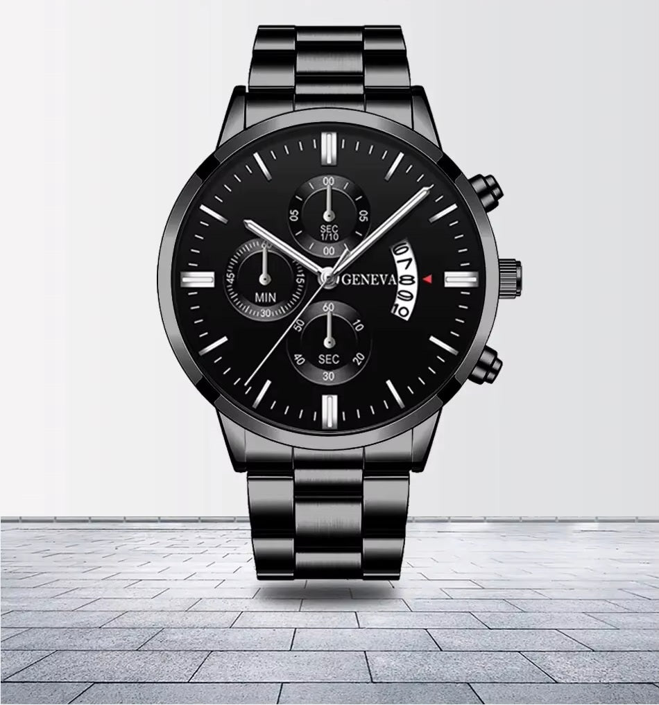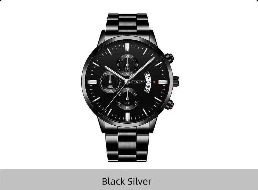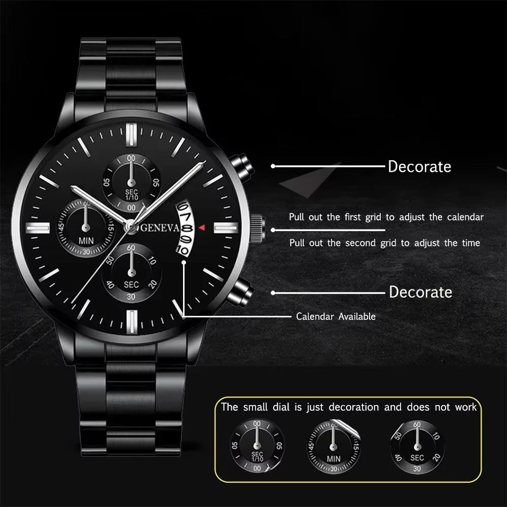 Men Black Stainless Steel Watch Luxury Calendar Quartz Wrist Watch