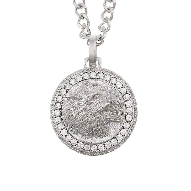 Silver Plated Roaring Wolf Head Pendant & Braid Link Chain