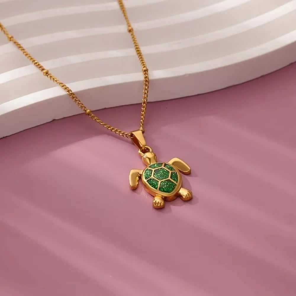 • Load image into Gallery viewer, Unisex Gold Plated Opal Stone Cute Stainless Steel Turtle Pendant Chain Necklace