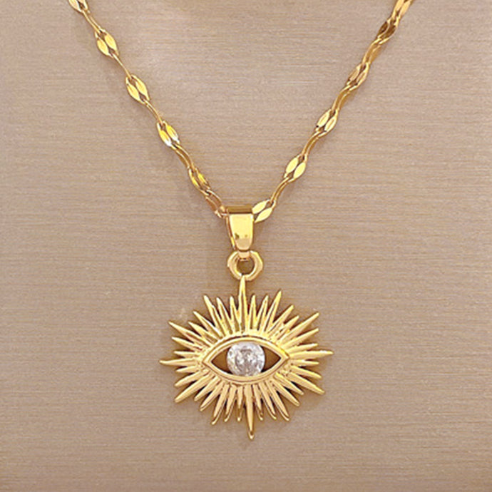 Unisex Gold Plated Sun Splash Crystal Eye Pendant Chain Necklace