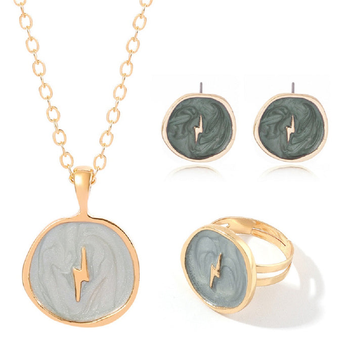 Green Moon Star Lightning Celestial Pendant Necklace Earring Ring 4Pc Set