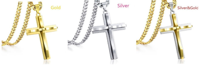 Unisex Luxury Infinity Smooth Layered Cross Pendant & Cuban Link Necklace Set