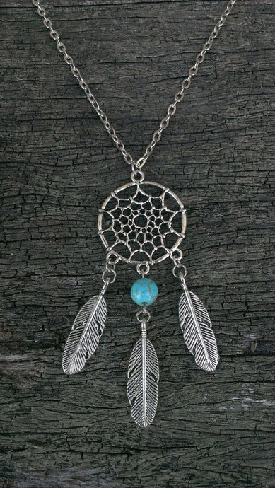 Ladies Silver Bohemia Dream Catcher Bead Feather Tassel Pendant Necklace