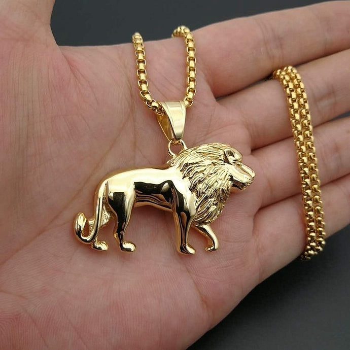 Mens Unisex Gold Plated Bold Solid Lion Pendant Link Chain Necklace