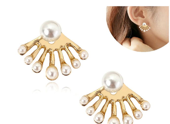 Star 18k Gold Plated Zirconia Pearls Metal Sector Shape Stud Earring