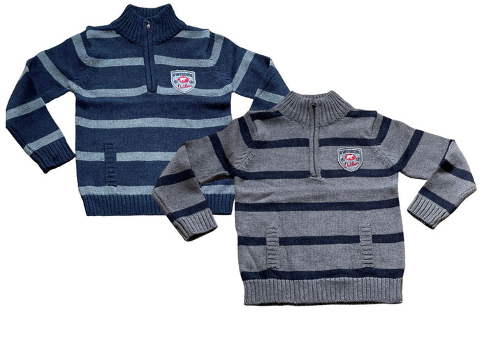 Boys Ribbed High Neck Striped Long Sleeve Half Zip Front Jumpers
