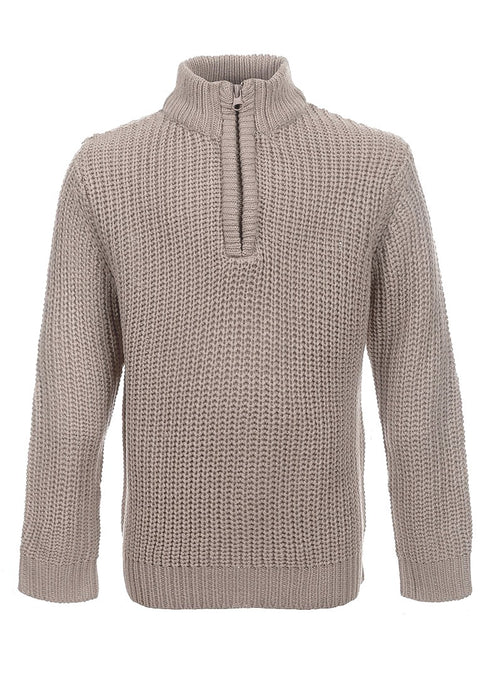 Boys Dusty Pink High neckline Half Zip Chunky Knitted Jumper