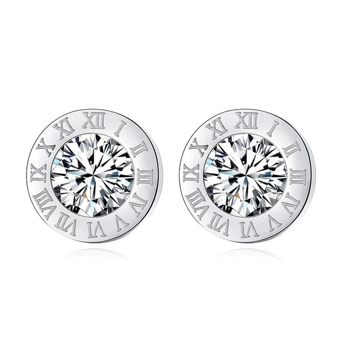 Unisex Silver Round Crystal Centre Anti Allergy Stainless Steel Numeral Earrings
