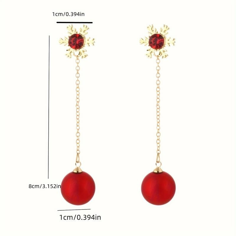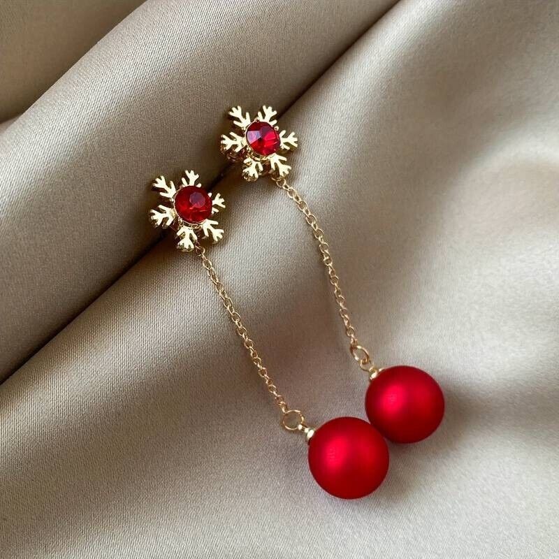 Red Crystal Snowflake Two Way Wear Ball Long Drop Earrings