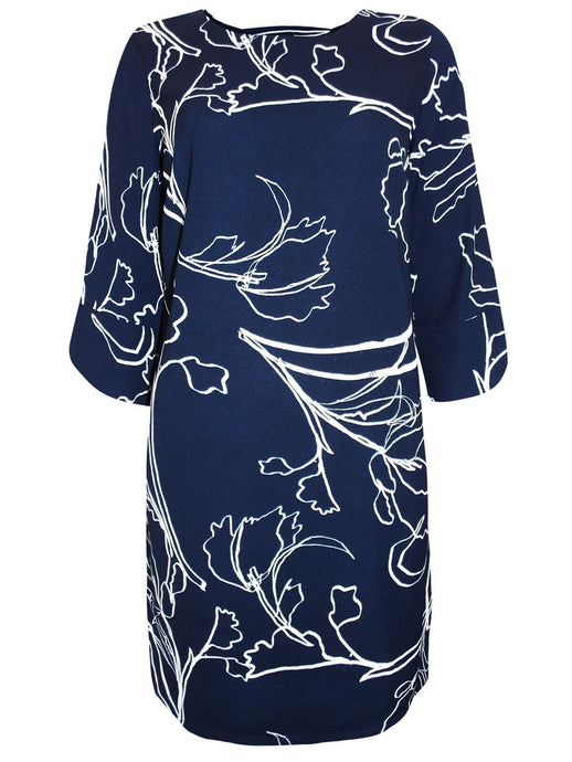 Ladies Navy & White Floral Print Keyhole Back 3/4 Sleeves Dress