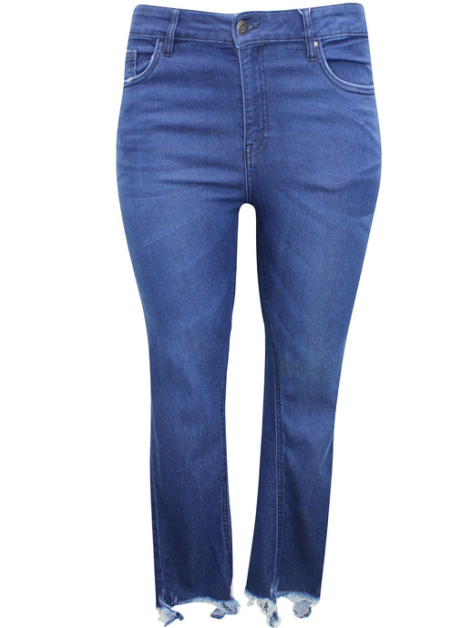 Ladies Blue Diane Distressed Frayed Hem Stretchy Skinny Plus Size Jeans