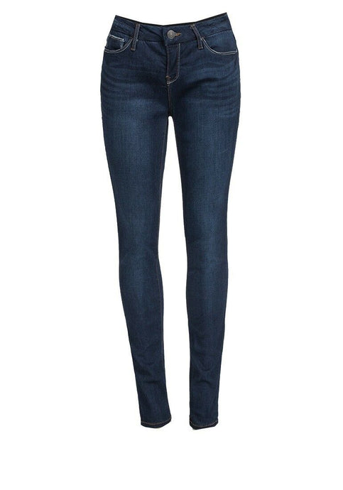 Ladies Dark Denim Blue Cotton Black Side Stripe Mid Waist Jeans