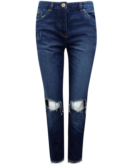 Blue Denim Boyfit Ripped Knees Frayed Hem Jeans