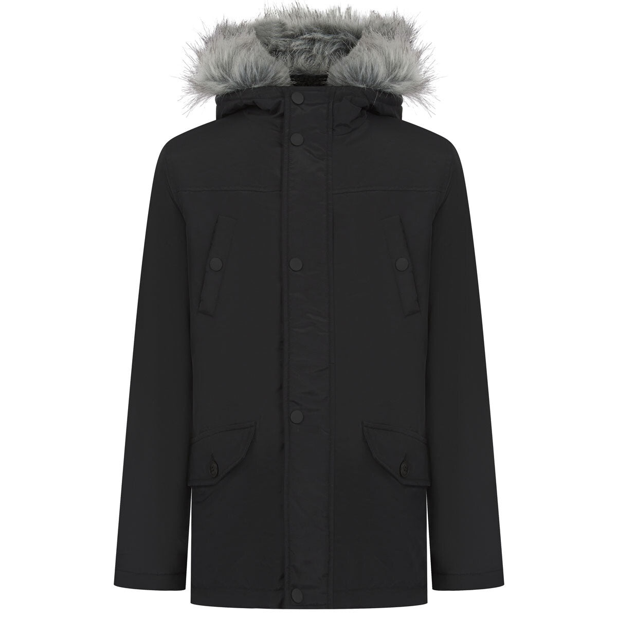 Boys Brave Soul Black Grey Furry Trim Wonderwall Parka School Jacket