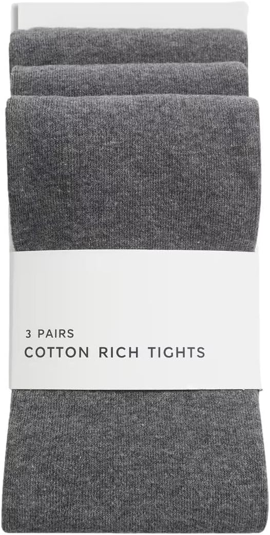 Update your child's schoolwear essentials with this practical 3-pack of cotton-rich grey tights. Designed for everyday comfort, they feature a soft grip waistband and flat seams for a smooth feel against the skin.The stretch-enhanced fabric offers a snug, flexible fit, while odour-control technology helps keep feet fresh throughout the day. Ideal for school uniforms, these tights combine durability with all-day wearability.