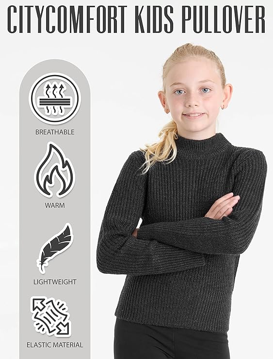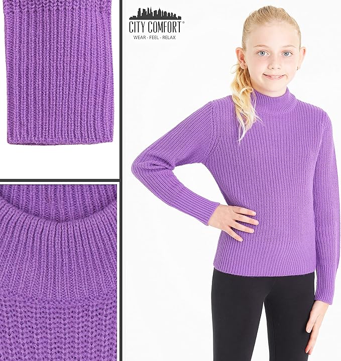 Girls City Comfort Pullover Ribbed High Neck Knitted Long Sleeve Sweater Jumper